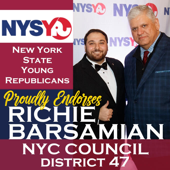 I am very excited to receive the endorsement of the New York State Young Republicans and Chairman Peter Giunta. We have formed a successful partnership that has delivered a message of responsibility and common sense. Thank you for supporting my campaign for NYC Council!