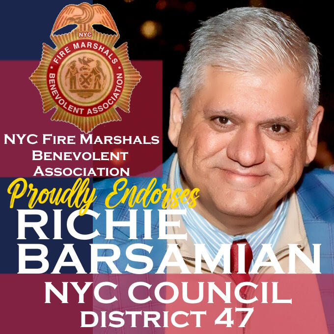 I am very honored to receive the endorsement of the NYC Fire Marshals Benevolent Association. Our Fire Marshals are dedicated to protecting all New Yorkers. Thank you!